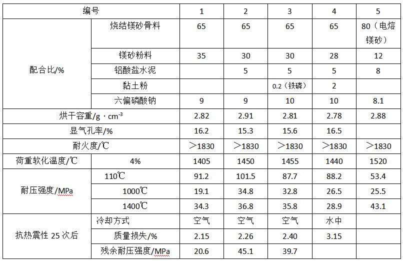在堿性耐火澆注料中,在保證拌和料和易性的前提下,六偏磷酸鈉溶液用量盡量少用,以保證其高溫性能;另外,耐火骨料品種、顆粒級配、骨粉料用量、鋁酸鹽水泥品種和用量等,也影響耐火澆注料的性能,應合理選用。