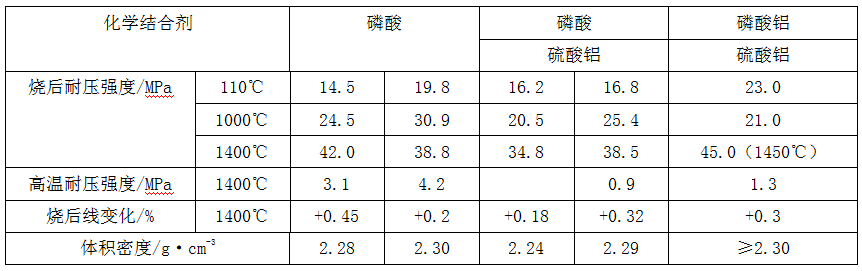 磷酸類硅酸鋁質(zhì)耐火可塑料的主要性能,見表1-1。從表中看出,烘干耐壓強(qiáng)度較高,1400℃燒后耐壓強(qiáng)度為35~42MPa。1400℃高溫抗折強(qiáng)度約為1.0MPa。另外,1350℃高溫抗折強(qiáng)度為2.1~3.3MPa。這說明,因含軟質(zhì)黏土,高溫下液相量多,致使高溫強(qiáng)度較低。