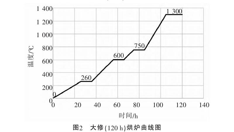 烘爐溫度上升情況基本符合烘爐溫度曲線圖表的規定。溫度上升不應有顯著的波動,也不應太快,否則將產生不均勻膨脹,導致砌體破壞。圖1和圖2列舉了兩種典型的烘爐曲線圖。